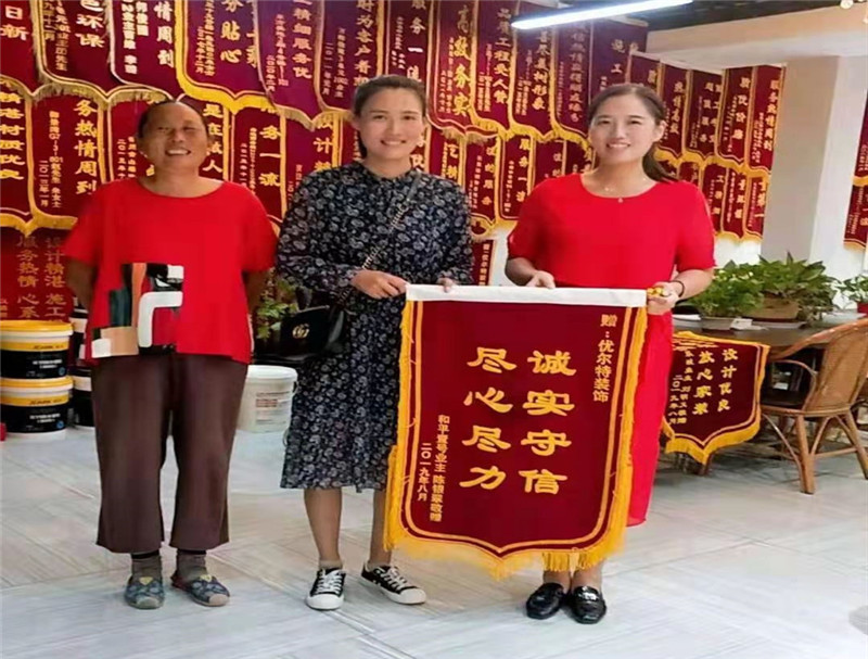 • 優爾特裝飾被工商管理局認定為“零投訴”單位,局領導親自頒發給優爾特裝飾董事長黃加忠牌匾及證書